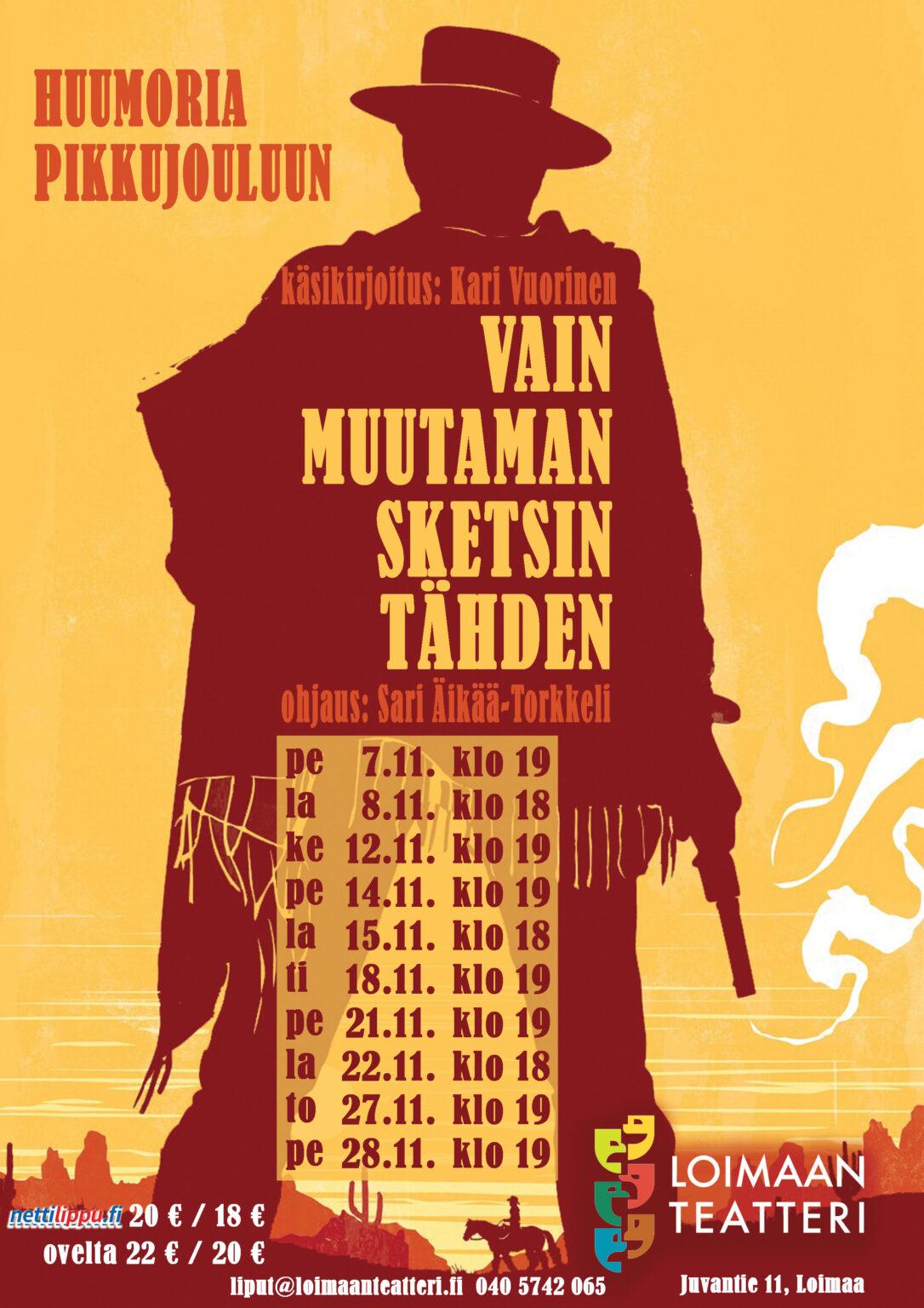 Ilta alkaa klo 19 Loimaan teatterissa Vain muutaman sketsin tähden -esityksellä.